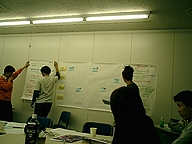 模造紙を貼って議事録を記すなんてスーパーアナログでわくわく。最初はブレストでもはじまるのかと思った。